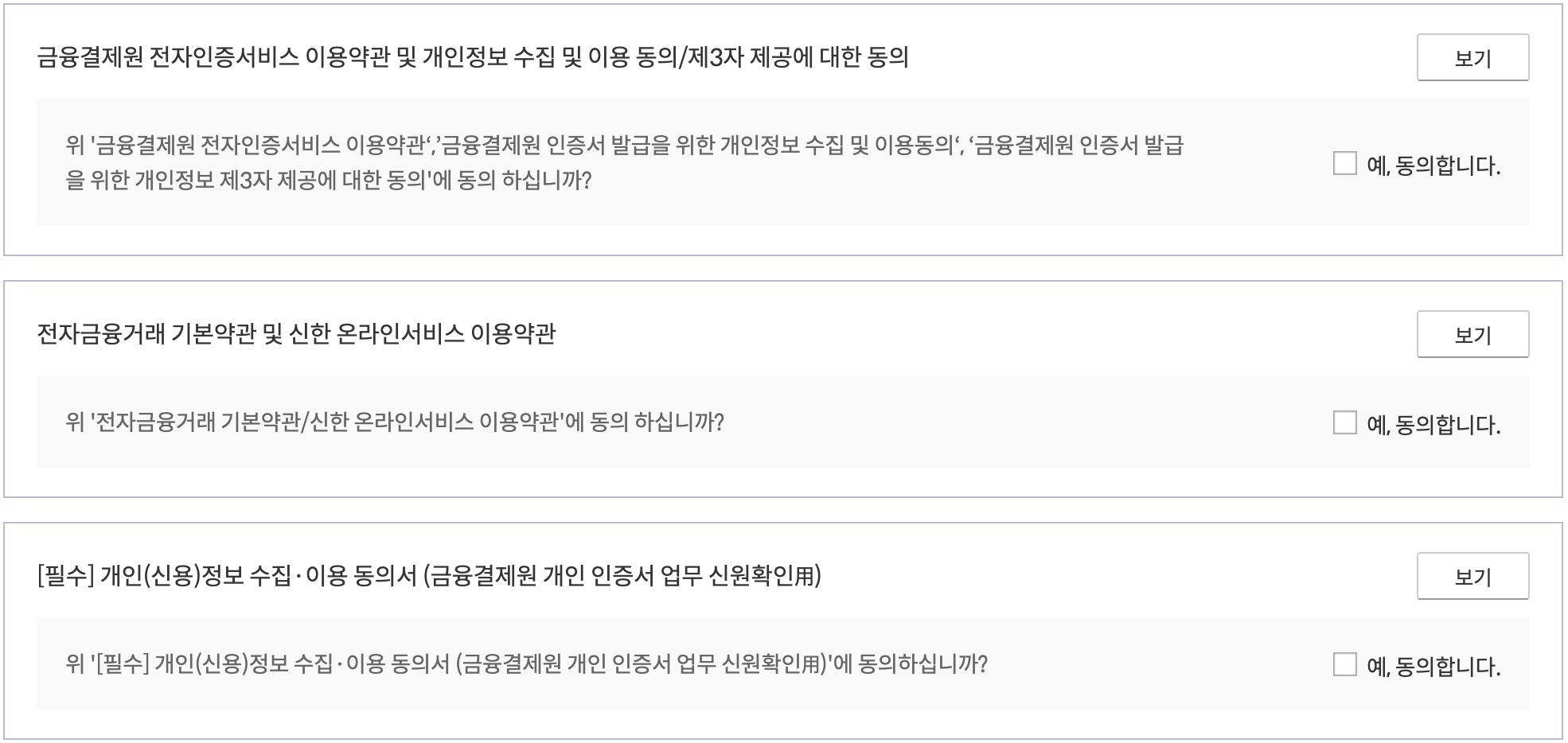 하시는게 아니라 보기버튼을 눌러 약관확인을 하셔야만 다음 단계로 진행이 가능하신 점 참고 부탁드립니다.